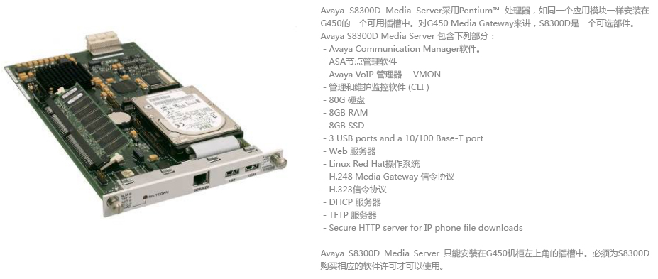 作(zuò)爲 Avaya 融合基礎設施産品系列的一部分(fēn),Avaya S8300D媒體(tǐ)服務器不僅能夠适用于符合行業标準的開放(fàng)式體(tǐ)系架構,還(hái)可(kě)與企業大(dà)部分(fēn)現有的基礎設施密切配合,幫助企業用較少的資源滿足其日(rì)益增長的需求。Avaya S8300D媒體(tǐ)服務器憑借其卓越的可(kě)擴展性,有助于減少大(dà)多數企業環境中的服務器數量,同時支持 IP 語音通信的功能、生(shēng)産力以及成本節約性;與此同時,它還(hái)憑借 Avaya Communication Manager 軟件(jiàn)豐富的功能,實現人(rén)員(yuán)和流程工(gōng)作(zuò)效率的******化,從(cóng)而使您的基礎設施創造更大(dà)的價值。