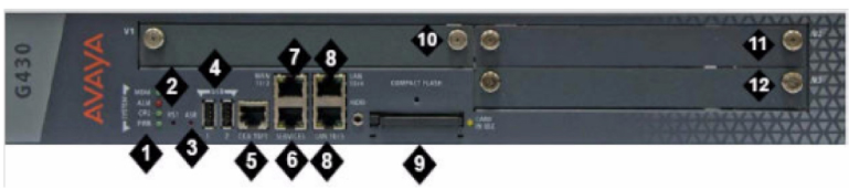 10. V1 – 标準媒體(tǐ)模塊或S8300 Server 插槽 11. V2 —标準媒體(tǐ)模塊插槽 12. V3 —标準媒體(tǐ)模塊插槽
